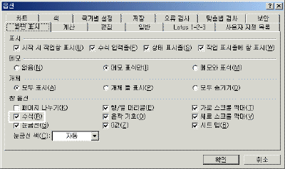 ÇÏ´Â °ÍÀÌ ÆíÇÒ °ÍÀÔ´Ï´Ù. ÀÌ·¯ÇÑ ¼³Á¤Àº [µµ±¸]-[¿É¼Ç]À» Ŭ¸¯ÇÏ¿© [¿É¼Ç]´ëÈ»óÀÚ¿¡¼ ÇÕ´Ï´Ù.