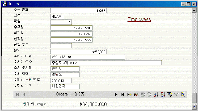 ¨ð 'Orders'ÀÇ ÇöÀç Çʵ忡 °ü·Ã...¾Æ·¡ÀÇ Ã¹ ¹øÂ° µå·Ó´Ù¿î ´ÜÃ߸¦ Ŭ¸¯ÇÑ ÈÄ EmployeeID