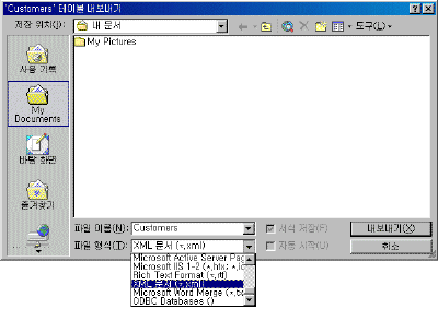 ¨é 'Customers' Å×ÀÌºí ³»º¸³»±â ´ëÈ­ »óÀÚ°¡ Ç¥½ÃµÇ¸é ÆÄÀÏ Çü½ÄÀÇ µå·Ó´Ù¿î ´ÜÃ߸¦ Ŭ¸¯ÇÏ¿© XML¹®¼­(*.xml)À» ¼±ÅÃÇÑ ÈÄ ³»º¸³»±â ´ÜÃ߸¦ Ŭ¸¯ÇÑ´Ù.