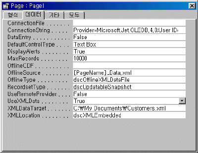 ¨î XMLDataTarget ¼Ó¼º¿¡ Ŭ¸¯ÇÑ ÈÄ C:\My Documents\Customers.xmlÀ» ÀÔ·ÂÇÑ´Ù.