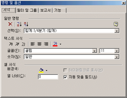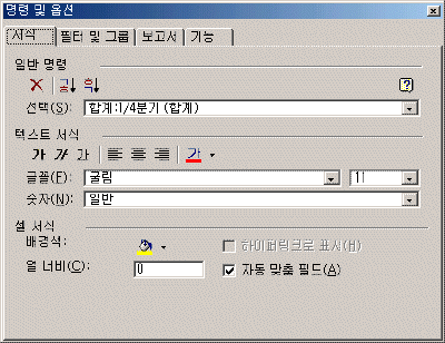 - ¸í·É ¹× ¿É¼Ç : ¸í·É ¹× ¿É¼Ç ´ÜÃ߸¦ ¼±ÅÃÇÏ¸é ¼­½Ä, ÇÊÅÍ ¹× ±×·ì, º¸°í¼­, ±â´É µîÀÇ ÅÇÀ¸·Î ±¸¼ºµÈ ¸í·É ¹× ¿É¼Ç ´ëÈ­ »óÀÚ°¡ ³ªÅ¸³­´Ù. ÀÌ ´ëÈ­ »óÀÚ¸¦ ÀÌ¿ëÇÏ¿© Çǹþ Å×ÀÌºí¿¡ ¼­½ÄÀ» ÁöÁ¤Çϰųª ÇÊÅÍ ¹× ±×·ìÈ­ÇÒ ¼ö ÀÖÀ¸¸ç º¸°í¼­ ±â´É µîÀ» »ç¿ëÇÒ ¼ö ÀÖ´Ù.