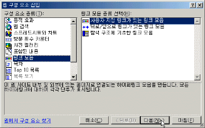 ¨è ±¸¼º ¿ä¼Ò Á¾·ù¿¡¼­ ¸µÅ© ¸ðÀ½À» ¼±ÅÃÇϰí, ¸µÅ© ¸ðÀ½ Á¾·ù ¼±Åÿ¡¼­´Â »ç¿ëÀÚ ÁöÁ¤ ¸µÅ©°¡ ÀÖ´Â ¸µÅ© ¸ðÀ½À» ¼±ÅÃÇÑ´Ù. ´ÙÀ½ ´ÜÃ߸¦ Ŭ¸¯ÇÑ´Ù.