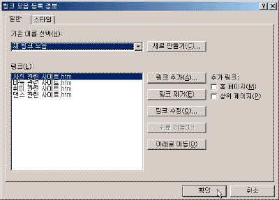 ¨ë ¸µÅ© ¸ðÀ½ µî·Ï Á¤º¸ ´ëÈ­ »óÀÚ¿¡¼­ ¸µÅ© Ãß°¡ ´ÜÃ߸¦ Ŭ¸¯ÇÏ¿© ¸µÅ© ¸ðÀ½¿¡ µî·ÏÇÒ À¥ ÆäÀÌÁö¸¦ ¼±ÅÃÇϰí È®ÀÎ ´ÜÃ߸¦ Ŭ¸¯ÇÑ´Ù.