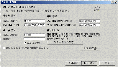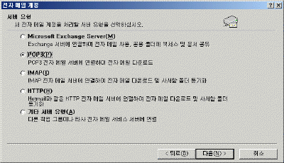 ¨é ¼­¹ö À¯Çü Áß POP3¸¦ ¼±ÅÃÇÏ°í ´ÙÀ½ ´ÜÃ߸¦ Ŭ¸¯ÇÑ´Ù.