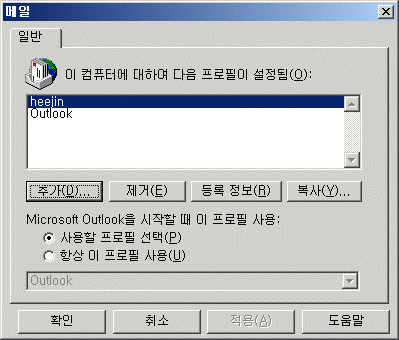 ¨è ¸ÞÀϼ³Ä¡-Outlook ´ëÈ­ »óÀÚ°¡ ³ª¿À¸é ÇÁ·ÎÇÊ º¸±â ´ÜÃ߸¦ Ŭ¸¯ÇÑ´Ù.