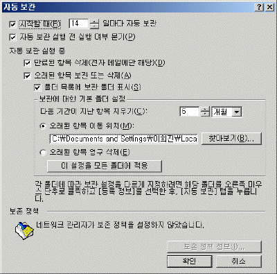 ÀÚµ¿ º¸°üÀº ±âº»ÀûÀ¸·Î ÄÑ ÀÖÀ¸¸ç ÁöÁ¤µÈ °£°ÝÀ¸·Î ÀÚµ¿ ½ÇÇàµÇ¾î ¿À·¡µÇ°Å³ª ¸¸·áµÈ Ç׸ñÀ» Æú´õ¿¡¼ »èÁ¦ÇÑ´Ù. ÁöÁ¤µÈ º¸°ü