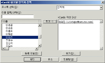 ¨ê ÁÖ¼Ò·Ï¿¡¼ vCard·Î ³»º¸³¾ ¿¬¶ôó¸¦ ¼±ÅÃÇÑ ÈÄ Ãß°¡ ´ÜÃ߸¦ Ŭ¸¯ÇÏ¿© vCard ÀÛ¼º ´ë»ó Ç׸ñ¿¡ µî·ÏÇÑ