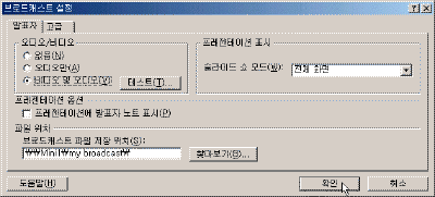 ¨é ¹æ¼Û½Ã ºñµð¿À³ª ¿Àµð¿À Àåºñ¸¦ »ç¿ëÇÒ °ÍÀÎÁö ¼±ÅÃÇÏ°í ½½¶óÀÌµå ¼î ¸ðµå¿Í ºê·Îµåij½ºÆ® ÆÄÀÏ ÀúÀå À§Ä¡¸¦ ¼±ÅÃÇÑ´Ù. È®ÀÎ ´ÜÃ߸¦ Ŭ¸¯ÇÑ´Ù.