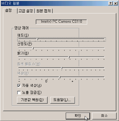 ¨ì Ä«¸Þ¶ó °Ë»ç°¡ ½ÃÀÛµÇ¸é ºñµð¿À ¿øº» ´ëÈ­ »óÀÚ¿¡¼­ äµµ, ¼±¸íµµ, ¹à±â µîÀ» ÀûÀýÇÏ°Ô Á¶Á¤Çϰí È®ÀÎ ´ÜÃ߸¦ Ŭ¸¯ÇÑ´Ù. Ä«¸Þ¶ó °Ë»ç â¿¡¼­ ´Ý±â¸¦ Ŭ¸¯ÇÑ´Ù.