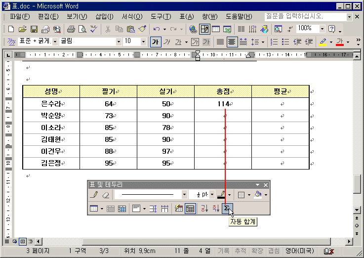 ¨ç °è»êµÈ °á°ú°ªÀ» ±¸ÇÒ ¼¿¿¡ Ä¿¼­¸¦ µÎ°í Ç¥ ¹× Å׵θ® µµ±¸ ¸ðÀ½¿¡¼­ ÀÚµ¿ ÇÕ°è ¾ÆÀÌÄÜ À» Ŭ¸¯ÇÑ´Ù.