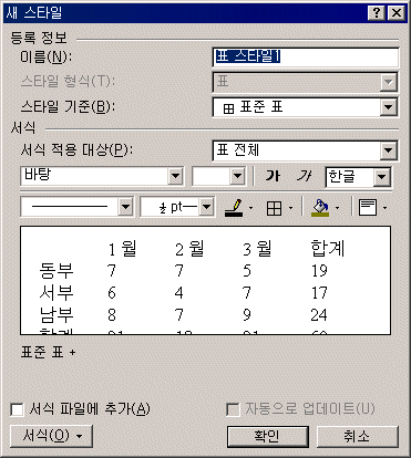 Ç¥ ÀÚµ¿ ¼­½ÄÀ» ÀÌ¿ëÇÏ¿© Å׵θ®, À½¿µ, ±Û²Ã, ¸ÂÃã µî°ú °°Àº Ç¥ Àüü ¼­½ÄÀ» ÇѲ¨¹ø¿¡ ÁöÁ¤ÇÒ ¼ö ÀÖ´Ù. ¿öµå 2002¿¡¼­´Â »ç¿ëÀÚ°¡ ÀÚÁÖ ¾²´Â Ç¥ ½ºÅ¸ÀÏÀ» º°µµ·Î ÀúÀåÇØ µÎ¾î ½±°Ô ´Ù½Ã »ç¿ëÇÒ ¼ö ÀÖ´Ù.
